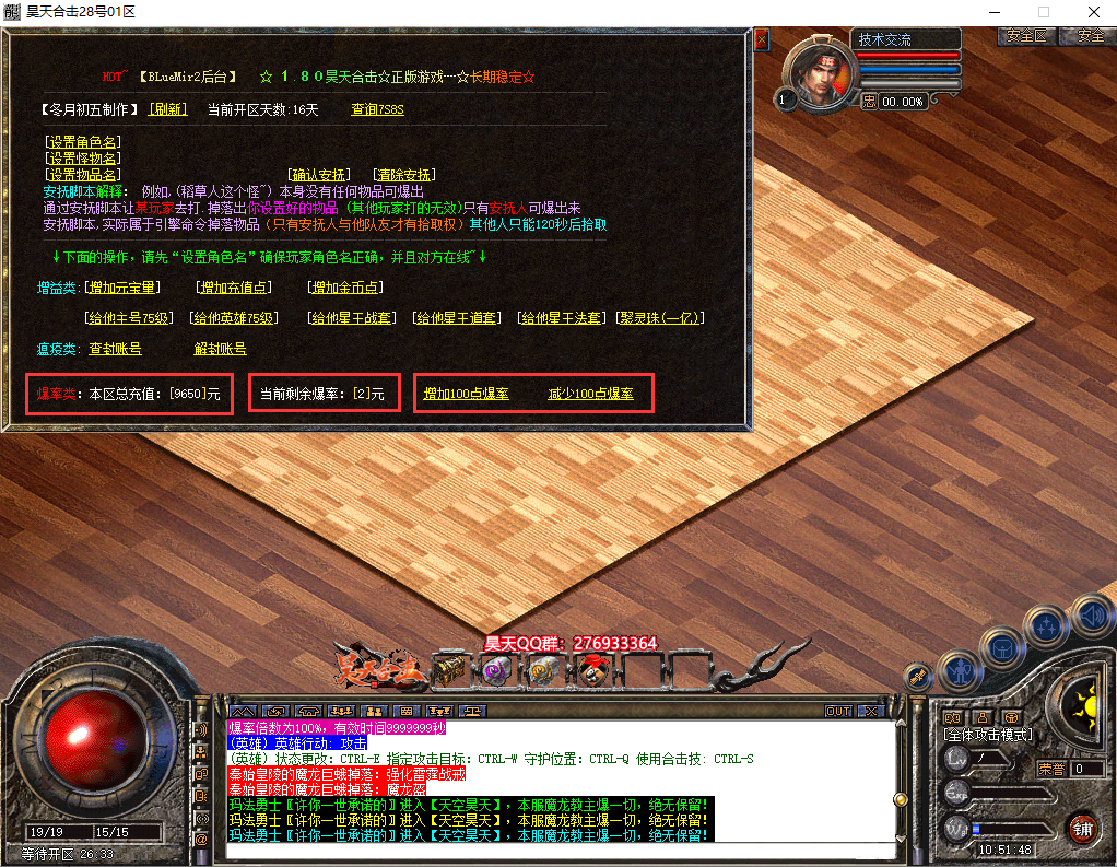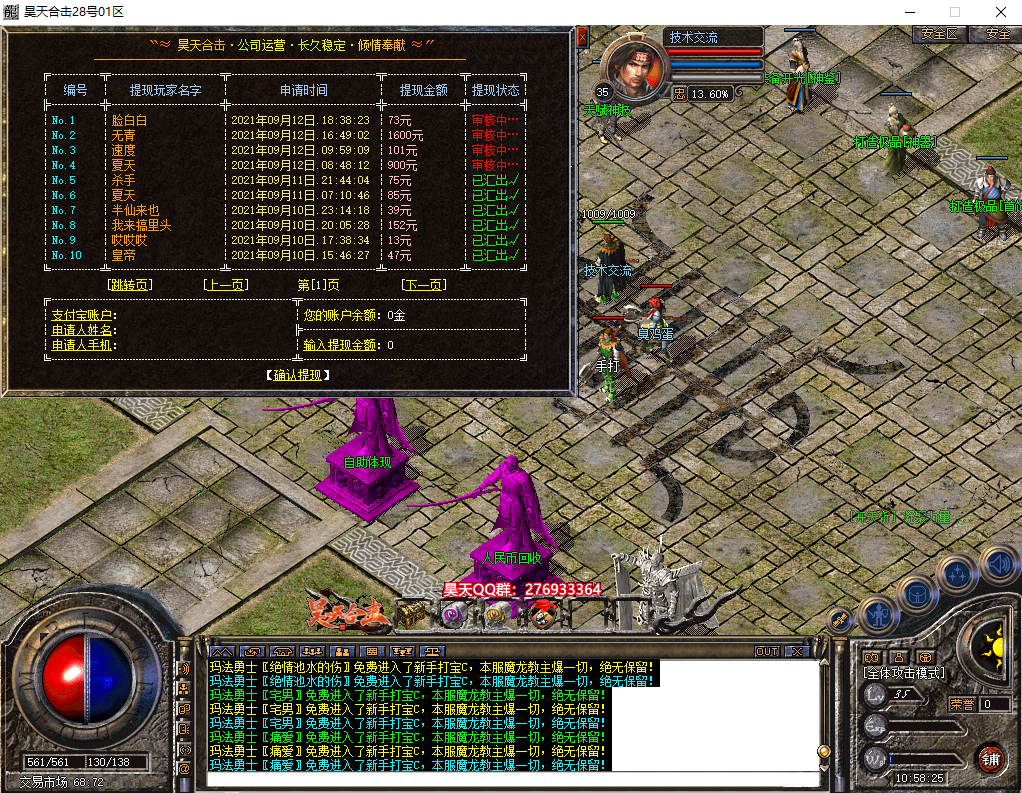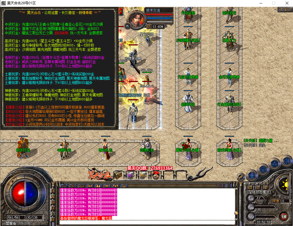 版本附加:刀刀切割、合击切割、鞭尸、攻倍、酒神、幸运触发、极品触发、爆率增加、全局爆率、动态称号、通区沙捐、行会捐献、充值转区、打宝查询、打金排行、自动喝药、自助提现、神魔附体、等级突破、黑金贵宾、竞拍地图、等流行脚本
